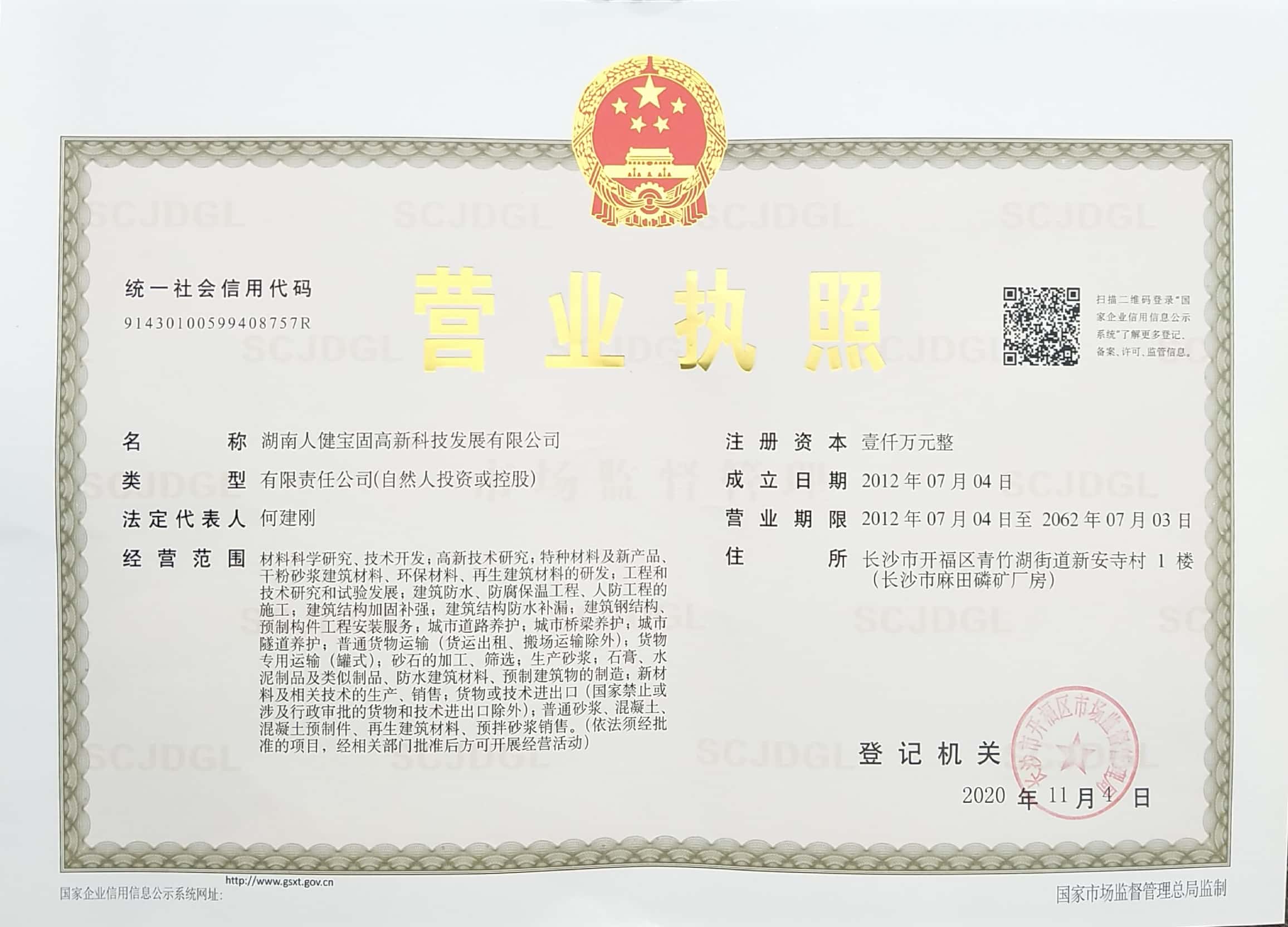 2020年疫情防控期間,湖南人健寶固高新科技發展有限公司董事長楊娟女士對內組織好公司內部防控工作,對外關心疫情發展形勢,為廣大一線員工穩崗,未出現員工因疫情被迫失業現象等,切實穩定了公司經濟發展,同時也為行業的經濟穩定做出了不小的貢獻。2020年12月,中國建筑業協會混凝土分會授予楊娟女士“2020年抗擊新冠肺炎疫情先進個人”榮譽稱號。